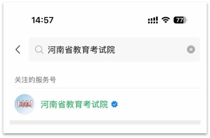 方法2:微信搜索“河南省教育考试院” 微信公众号并关注。