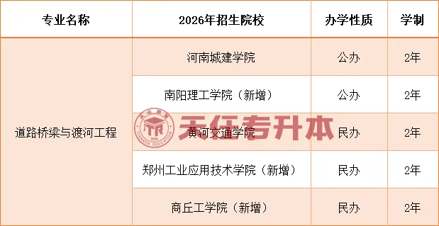 2026河南专升本道路桥梁与渡河工程招生院校